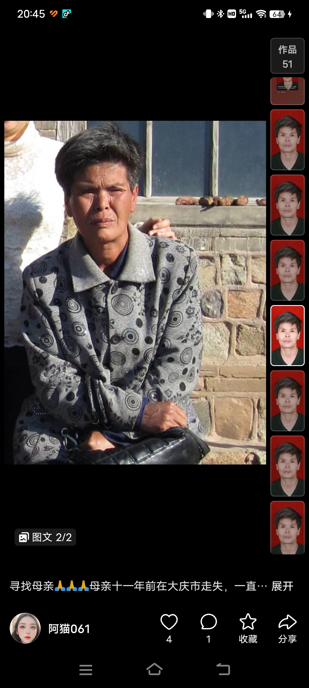 正文 失踪人员:杨凤金 admin V管理员 /前天/2.67 K阅读/0评论 0317 失踪人员:杨凤金 (寻亲网编号:10633) 基本信息: 姓 名:杨凤金 性 别:女性 出生日期:195012 失踪日期:2012 失踪地点:黑龙江省大庆市 失踪时身高:160 联系方式:13504593723 详细介绍: 偏瘦,有精神问题 信息图片: 寻人启事资料、照片等均由用户提供,如侵犯任何第三人肖像权、隐私权或其他合法权益,请联系本站删除!